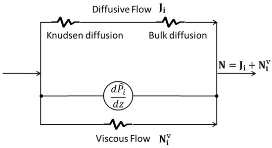 while diffusion flux can be expressed using the dusty-gas model, which extends the Maxwell–Stefan Equation (7) to porous media as follows: