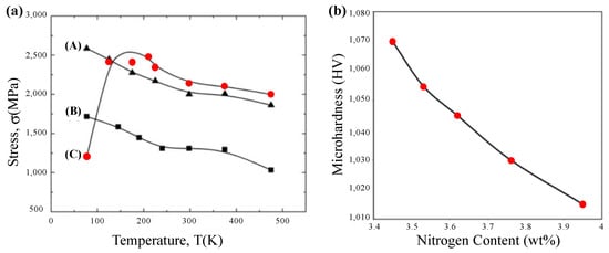 - Salahinejad, E.; Amini, R.; Marasi, M.; Sritharan, T.; Hadianfard, M. The effect of nitrogen on the glass-forming ability and micro-hardness of Fe–Cr–Mn–N amorphous alloys prepared by mechanical alloying. Mater. Chem. Phys. 2009, 118, 71–75. [Google Scholar] [CrossRef]