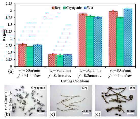 - Aramcharoen, A. Influence of cryogenic cooling on tool wear and chip formation in turning of titanium alloy. Procedia CIRP. 2016, 46, 83–86. [Google Scholar] [CrossRef]