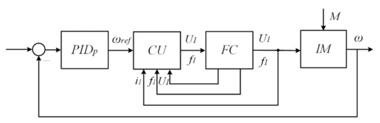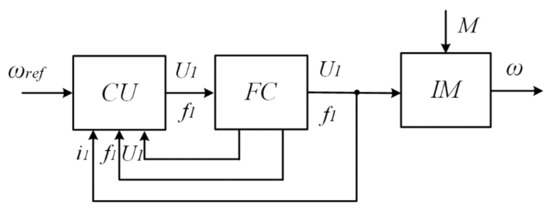 Block diagram of an asynchronous electric drive with scalar and vector sensorless control. CU, control unit; FC, frequency converter; IM, induction motor.