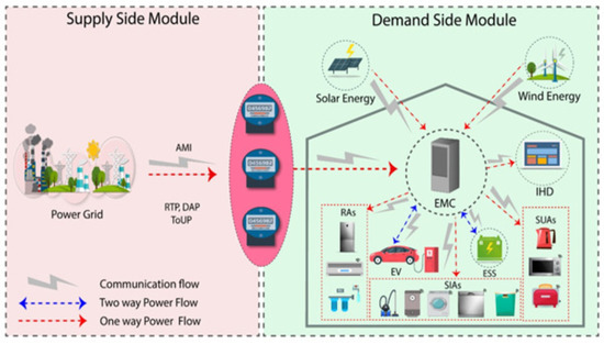 The SG DR program persuades consumers to take part in the energy market via Advanced Metering Infrastructure (AMI) to cope with the rising electricity demand with available power generation. The DR program is of two types: price-based DR and incentive-based DR. The first type of DR is related to indirect load control, where consumers manage their load in response to the DR scheme issued by the utility. In contrast, the other type of DR is related to direct load control, where control is with the utility company to manage the consumer’s load with in-advance short notice [5]. Since buildings’ electricity consumption is more than 80%, which is a significant portion of net energy consumption; hence, the first program is more suitable, where both consumers and utility actively participate to produce optimal power usage schedule of buildings, which is beneficial for both the parties [6].