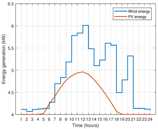where shows single RES electricity generation, the net energy generation of microgrid during 24 h is as modeled as follows: