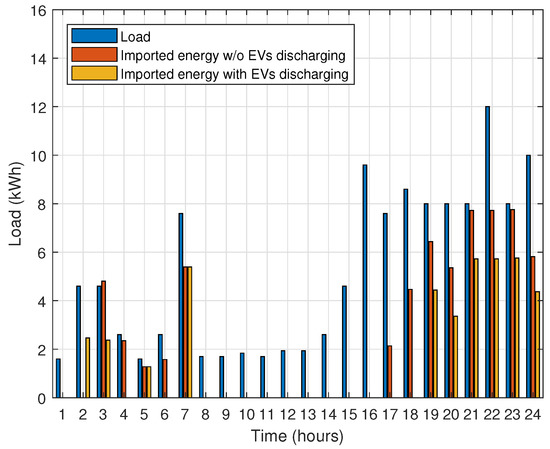 The imported energy considering microgrid including ESSs, EVs, and MGT is expressed in Equation (30).