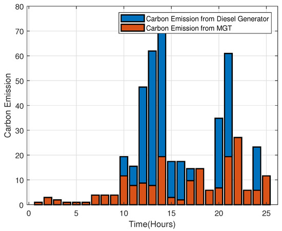 Carbon emission minimization is one of our objectives that highly contribute to a sustainable, neat, and clean environment. Existing literature used diesel generators as backup, which release more carbon emission and cause global warming. Thus, we employed MGT with RESs in a microgrid instead of a diesel generator as a backup to ensure carbon emission minimization to participate in a clean and green environment. Carbon emission is mathematically modeled as follows: