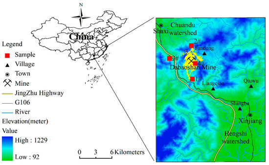 Sketch map of the Dabaoshan mine area and the sampling site locations.