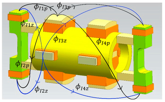 where, —The magnetic flux generated by the excitation core I in the vertical direction from the induction pole m to the induction pole n, (m, n = 1, 2, 3, 4). Due to the symmetry of the induction core structure, the magnetic flux from one induction pole to the other three induction poles can be equal, that is: