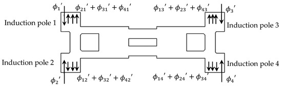 where —Magnetic flux flowing from excitation core I to induction pole n in the horizontal direction (n = 1, 2, 3, 4).