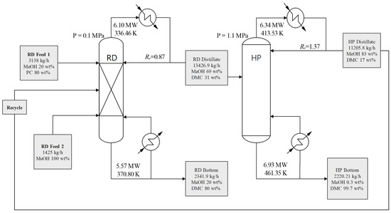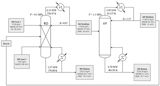 6. Fang, Y.-J.; Xiao, W.-D. Experimental and modeling studies on a homogeneous reactive distillation system for dimethyl carbonate synthesis by transesterification. Sep. Purif. Technol. 2004, 34, 255–263. [Google Scholar] [CrossRef]