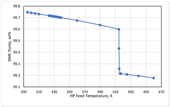 Figure 8. Effect of the HP Feed Temperature on the DMC Purity.