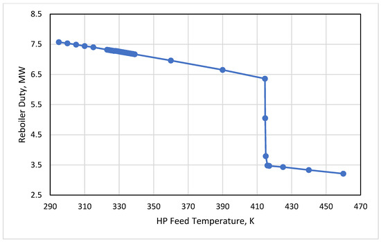 Figure 9. Effect of the HP Feed Temperature on the Reboiler Duty.