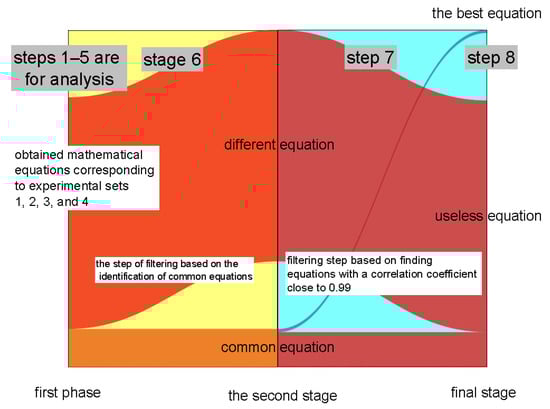 In order to create a mathematical equation corresponding to different experimental research, many works have been conducted and are presented in the specialized literature [27,28,29,30,32,36,37,38,39]. However, a rather difficult problem arises when it is desired to identify a mathematical equation that corresponds to several studies: