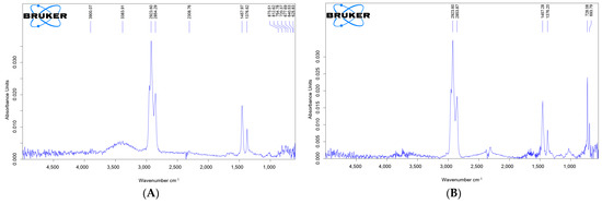 IR spectrum of ARPD solvent (A) and spectrum of ARPD + solution + EVA sample (B).
