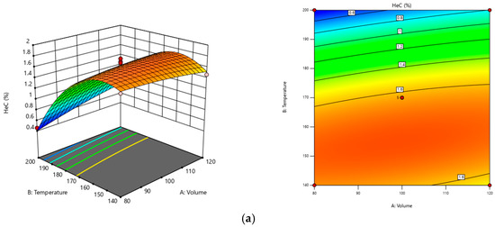 By examining the maximum created by the X and Y coordinates, the optimal values of the variables may be determined. Responses were temperature range of 150 °C, extraction time of 3 min, and a solvent level of 110 mL. After a batch of tripled experiments, the efficiency of extraction was 1.879% ± 1.343%, which was close to the prediction of the model (1.899%). These points were found within the experimental ranges, suggesting that these analytical approaches might be utilized to find the best conditions.