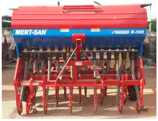 Field trials were conducted in loamy soil at the Research and Application Farm of Agriculture Faculty on the Campus of Akdeniz University. The seedbed was thoroughly prepared by plowing to an approximate depth of 30–35 cm, disc harrowing, and leveling. The workable soil had no rocks or hard clay clods and was without crop residues. Tests were conducted at near-optimum soil moisture for tillage and sowing. The seed drill was operated over the seedbed at a forward speed of 1.0 m/s and a seeding rate of 200 kg/ha.