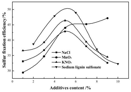 - The additives have a catalytic effect on the sulfur-fixing reaction of steel slag, as well as forming a microscopic surface structure that promotes the gas–solid reaction and aids in the production of substances that inhibit the decomposition of sulfur-fixing products;