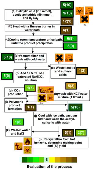 - Ribeiro, M.G.T.C.; Costa, D.A.; Machado, A.A.S.C. “Green star”: A holistic green chemistry metric for evaluation of teaching laboratory experiments. Green Chem. Lett. Rev. 2010, 3, 149–159. [Google Scholar] [CrossRef]