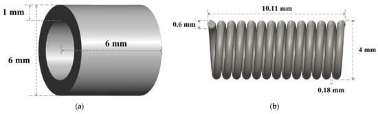Figure 1 shows the specifications of the Raschig ring and the helical ring adopted in this study. The size of the Raschig ring was a 6-mm outer diameter, 6-mm height, and a 4-mm inner diameter. For the helical ring, the height of the packing was 10.11 mm, and its diameter was 4 mm. The diameter of the helical tube was 0.6 mm, and the gap between the helical tubes was 0.18 mm.