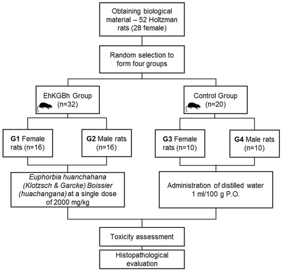 APA StyleVillafuerte, G., Ñañez, D., Félix, L. M., Moya-Salazar, M. M., Torres-Véliz, E. R., Ramos, A. G., Contreras-Pulache, H., & Moya-Salazar, J. (2022). Acute Hepatic and Renal Toxicity Assessment of Euphorbia huanchahana (Klotzsch & Garcke) Boissier (Huachangana) in Holtzman Rats. Processes, 10(7), 1286. https://doi.org/10.3390/pr10071286