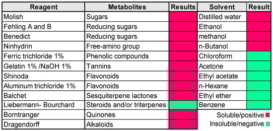 2.2. Obtaining the Ethanolic Extract, Solubility Test and Phytochemical Analysis