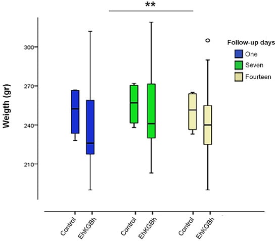 | Weight day seven (gr) | Control | 270.50 | 2.12 | 16.00 | 1 | |