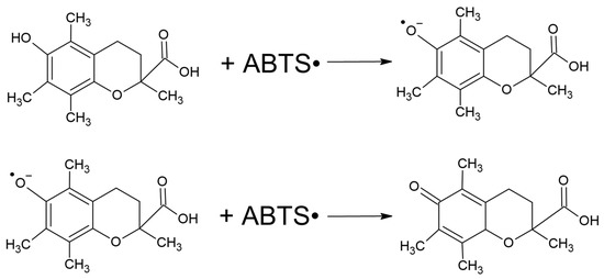 The reaction of ABTS• with the standard antioxidant Trolox is believed to proceed in two steps (Reactions (1) and (2)):