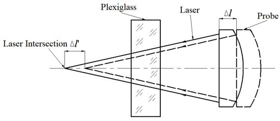 According to the principle of light refraction, the distance traveled by a laser through Plexiglass into water is not the same as the actual distance traveled by the laser emission probe, that is, the ratio of the constant n (refractive index). This constant is related to the glass material and the material processing procedure. Thus, the actual refractive index was tested to ensure the accuracy of the test. A schematic of the calibration process is shown in Figure 4.
