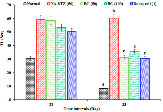 3.1. Effect of BC on VaD-Associated Changes of Transfer Latency (TL) in the EPM Test
