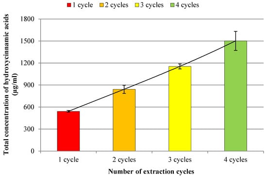 The effect of the number of extraction cycles on total concentration of hydroxycinnamic acids.