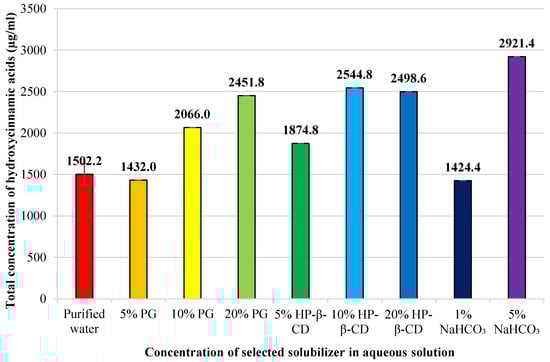 The effect of selected solubilizers on total concentration of hydroxycinnamic acids in aqueous solutions.