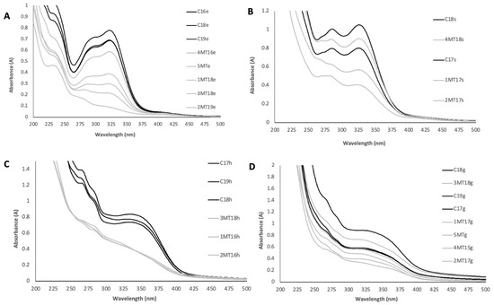 Spectroscopic analysis was conducted using a Specord 200 plus spectrophotometer Analytik Jena (Thuringia, Germany) and 3 mL quartz cuvette. Absorption spectra of 1:250 aqueous dilutions of the MTs were recorded in the range of 200–500 nm. Measurements and the recording of values of maximum and minimum peaks were performed using the AspectUV software 2020 (version 1.4.4), Analytik Jena AG, Jena, Germany. The raw data were exported and processed in Microsoft Excel 2022 (version 16.62), Microsoft, Redmond, WA, USA.