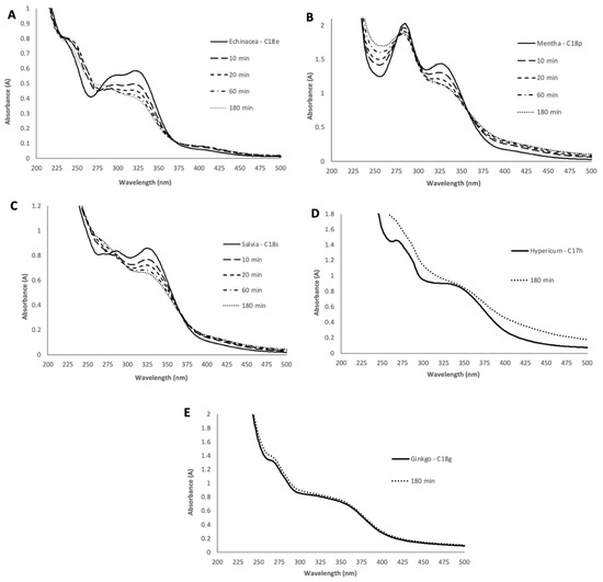 Figure 3). Following these results, the observation of the UV–Vis spectra pattern and its grade of flattening could be used as a simple method, with which to obtain a first rapid evaluation of the oxidation state of an herbal mother tincture.