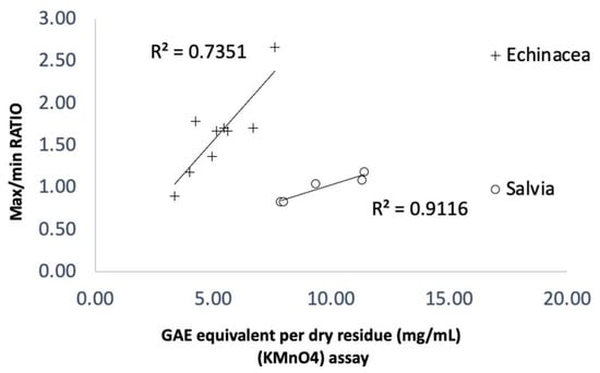 Figure 7). The decrease in the maximum–minimum ratio seems to be related to the decrease in antioxidant activity (