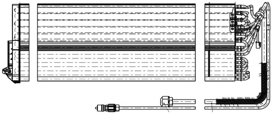 This section will take the manufacturing process of the evaporator as an example to apply and explain the proposed method. In addition, at the end of this section, the differences between this study and existing studies are discussed. Through analysis, the results in this paper have been fully affirmed by enterprise managers and proves its effectiveness and applicability. In addition, the customer mainly expounds the customer’s demand for evaporator QCs from the three characteristics of practicability, structural elements, and economy, and each feature contains specific demand indicators. At the same time, the manufacturing process of some type of evaporator is given. Figure 4 is a two-dimensional sketch of the evaporator.