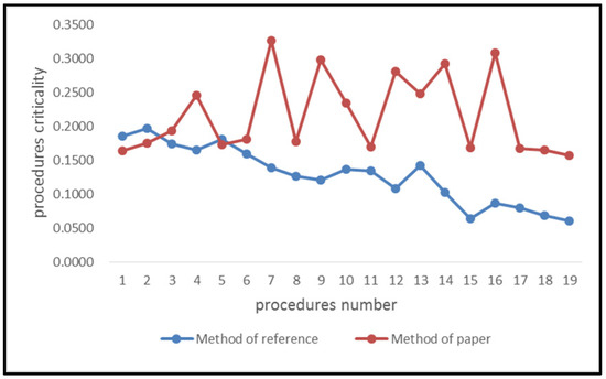 It can be seen from Figure 8 that the results show a decreasing trend using the methods in the references. This indicates that the starting procedure in the manufacturing process should be identified as the critical procedure. It is not consistent with the actual production situation. However, through comparative research, it is found that the method of this paper takes into account the impact of KQCs on procedure quality and also considers the influencing factors between processes which make the identification of critical procedure more objective and reasonable.