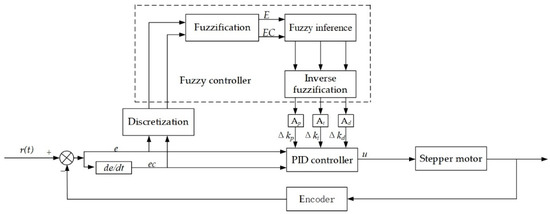 - Xu, G.Q.; Chen, Y.; Wang, P. Design Simulation of Hybrid Stepping Motor Fuzzy PID Controller. J. Anhui Polytech. Univ. 2019, 34, 39–45. [Google Scholar]