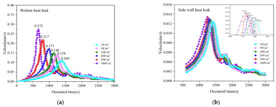Effect of heat leak at the bottom (a) and the side wall (b) on vertical velocity of interface monitoring points on the rollover process. This figure is adapted from [31].