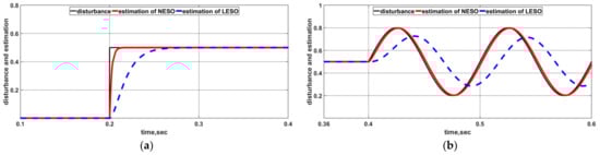 Performance comparison of two observers under the disturbance of (a) and (b) .