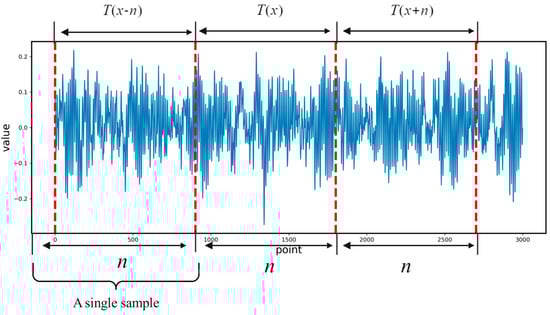 After the length of each sample is determined, the data are divided according to the time series, as shown in Formula (1). The signal intervals do not overlap; is the current time point, and n is the selected signal interval length.