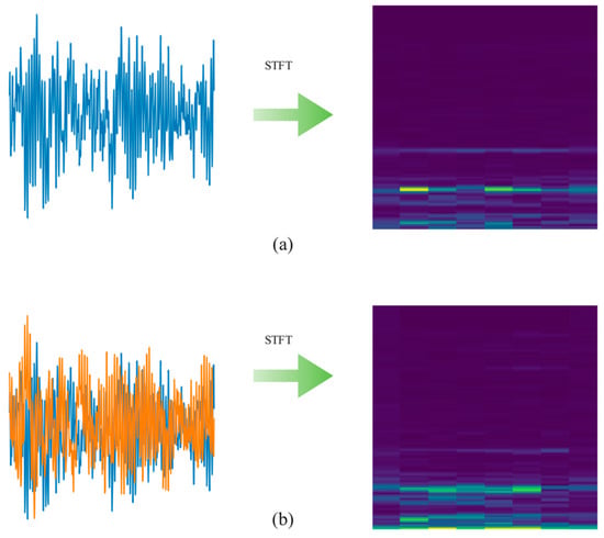 Short-time Fourier transform coding: (a) divided into vibration data of a single channel, (b) divided into vibration data of two channels.
