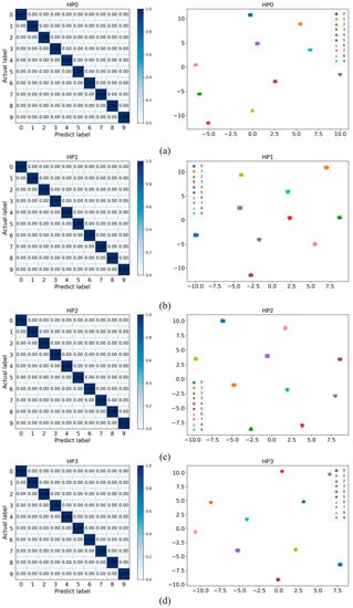Confusion matrix and cluster analysis results of four load conditions: (a) HP 0, (b) HP 1, (c) HP 2, (d) HP 3.