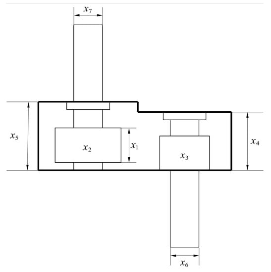 The optimization goal of this optimization problem is to minimize the weight of the speed reducer. This design problem includes seven optimization parameter variables and eleven constraints. Figure 6 shows the image expression of this design, and Equation (15) provides the mathematical expression. The IAO is compared with IHAOHHO, AO, AOA, PSO, SCA, GA, MDA, MFO, FA, HA, and PAO-DE. From Table 13, it can be seen hat the IAO is superior to all of the other algorithms, and ranks first.