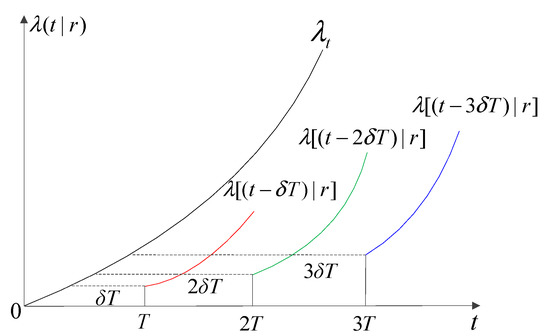 where refers to the interval of preventive maintenance. The change in the component failure rate after each imperfect preventive maintenance is shown in Figure 2.