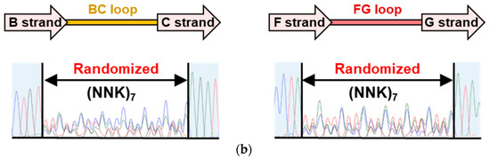 3.1. Construction of an Adnectin-Derived Phage Display Library with Randomized BC and FG Loops