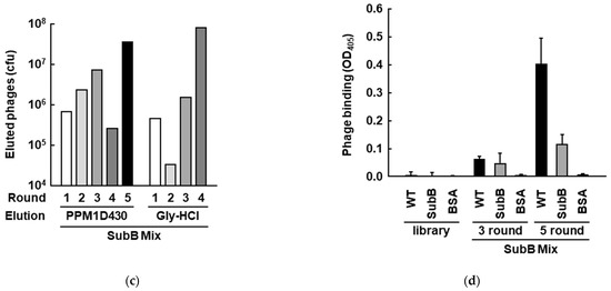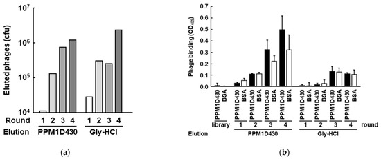 2.3. Biopaning of Adnectins against PPM1D430 Using Adnectin-Derived Phage Display Library