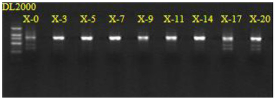 The pepper species used in this study was Capsicum annuum L. var. Dactylus M, which is slender and has a low pungency degree (about 2600 SHU) and high water content (about 84%, w/w). Fresh Capsicum annuum L. Var. Dactylus M was cleaned, chopped, salted with 8% (w/w) salt, placed in 8 sterile pickle jars with the same mass, covered, sealed with water, and fermented in a 30 °C incubator. In order to reveal the fungal communities in the fermented pepper, one pickle jar was removed from the incubator on the 3rd, 5th, 7th, 9th, 11th, 14th, 17th, and 20th fermentation days for sampling. Samples were marked X_3, X_5, X_7, X_9, X_11, X_14, X_17, and X_20, respectively. X_0 was cleaned fresh Capsicum annuum L. Var. Dactylus M. All samples were stored at −20 °C.