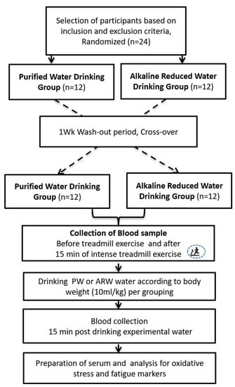 Lee, M.; Fadriquela, A.; Antonio, J.M.; Kim, C.-S.; Cho, I.-Y.; Kim, K.-E.; An, W.-S.; Jang, H.-Y.; Bajgai, J.; Lee, K.-J. Effects of Alkaline-Reduced Water on Exercise-Induced Oxidative Stress and Fatigue in Young Male Healthy Adults. Processes 2022, 10, 1543. https://doi.org/10.3390/pr10081543