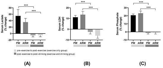 3.4. Effects of Drinking ARW after Exercise on Lactate, LDH, and Phosphate Levels