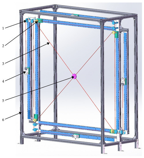 - Yao, R.; Tang, X.Q.; Wang, J.S.; Huang, P. Dimensional optimization design of the four-cable-driven parallel manipulator in FAST. IEEE ASME Trans. Mechatron. 2010, 15, 932–941. [Google Scholar] [CrossRef]