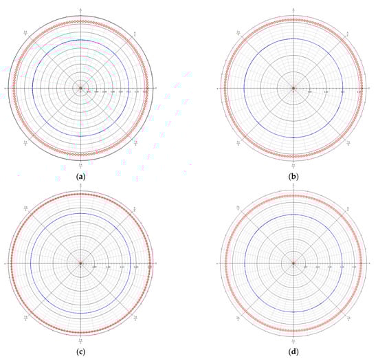 Range of borehole pressure relief under different horizontal in situ stress coefficients. (a) λ = 0.8; (b) λ = 0.9; (c) λ = 1.1; (d) λ = 1.2.