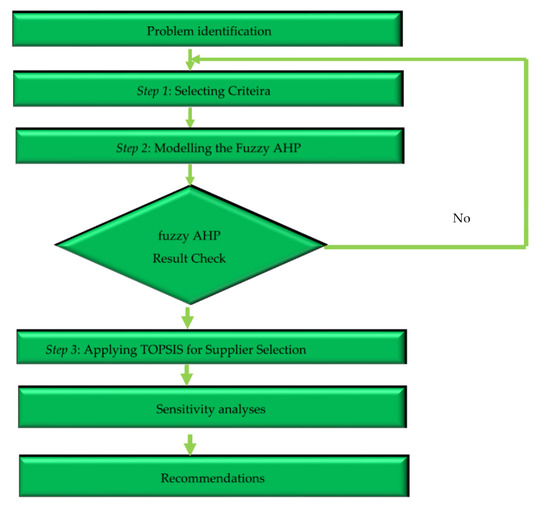 In this work, the authors proposed a MCDM model including fuzzy AHP and TOPSIS approach to select the sustainable supplier in plastics industry. There are three steps involved in this process, as shown in Figure 3: